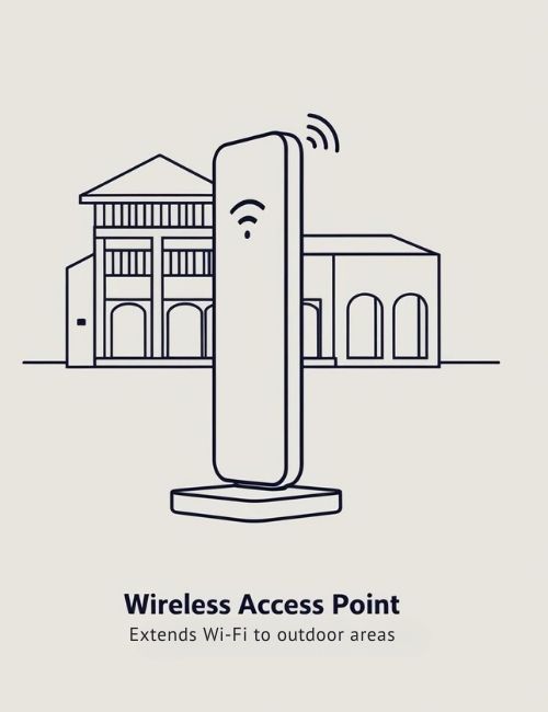 Upgrade your villa’s internet with Whitehats' Wireless Solution for 5 Bedroom Villa. Enjoy fast Wi-Fi, seamless outdoor coverage, and expert installation for a reliable network across your entire home.Wireless Access Point: